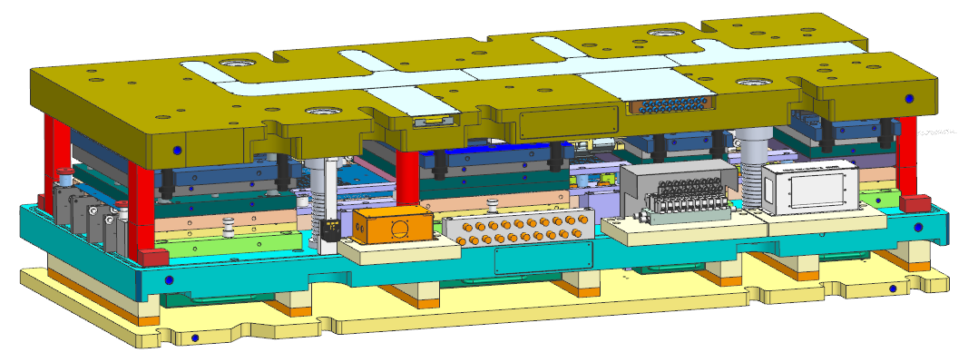 ![]() | ·Top Plate: S45C ·Punch Back Plate: CR12 ·Punch Plate: CR12MOV ·Stripper Housing: P20 ·Stripper Plate: CR12MOV ·Stripper Inserts: CR12MOV ·Die Plate: CR12MOV ·Cutting Die inserts: PM30 | ·Bending Inserts: CR12MOV ·Blanking Punches: SKH51 ·Bending Die & Punches: CR12MOV ·Draw Die & Punches: Copper Alloy ·Setting Block: CR12 ·Die Back Plate: CR12 ·Bottom Plate: S45C ·Strip Guide & Spacer Plate: CR12 |